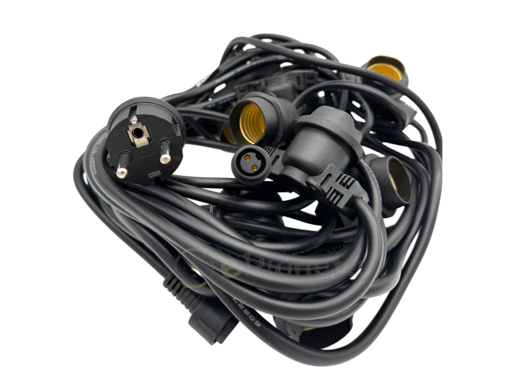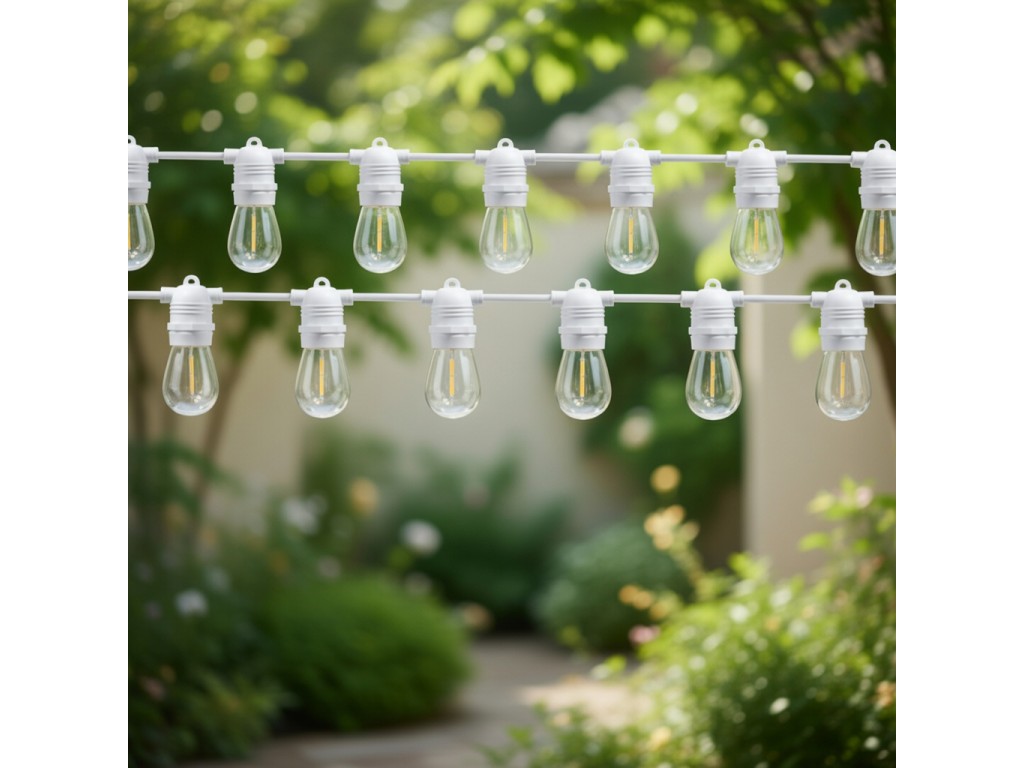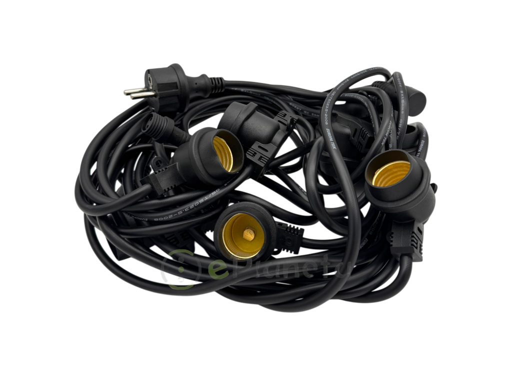 Materiali durevoli ideali per uso continuo all’aperto da 10 metri con 10 attacchi E27.